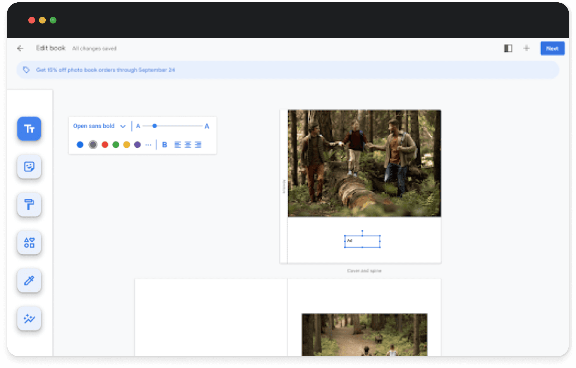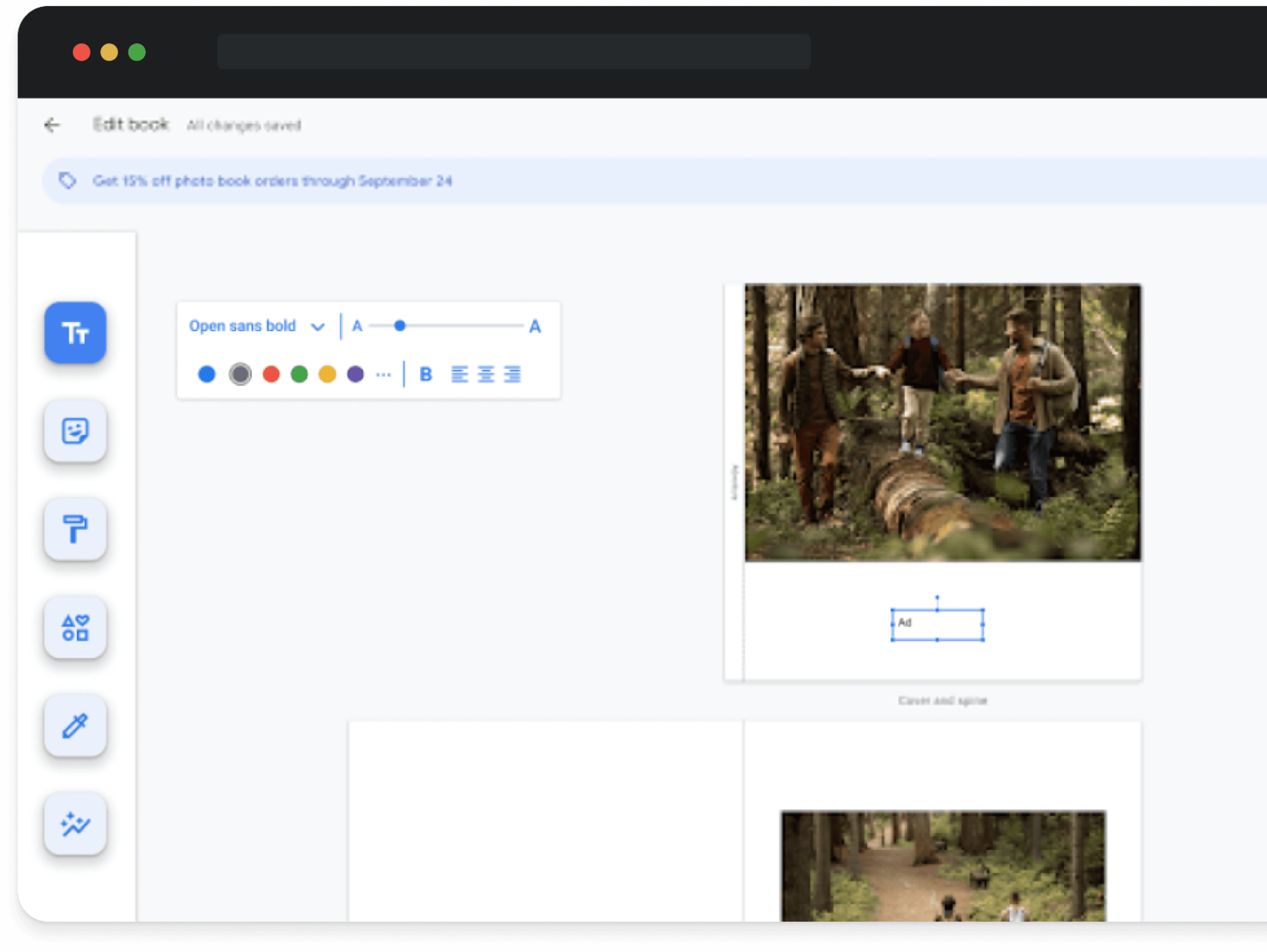 Photobook users experienced difficulty with basic design, like adding a background to the page and adding additional text and captions to the images.
